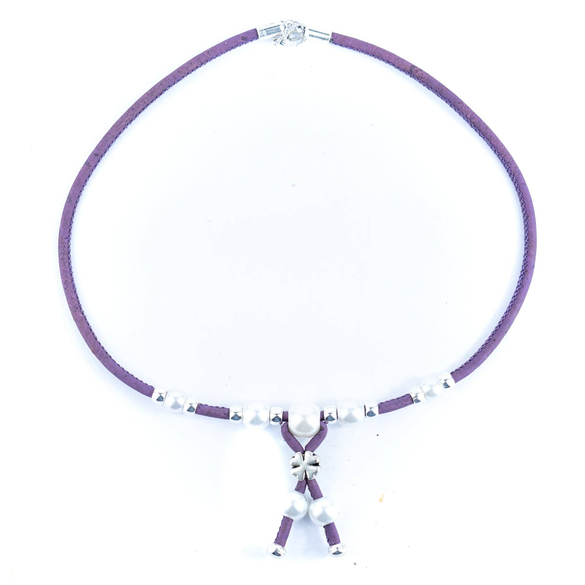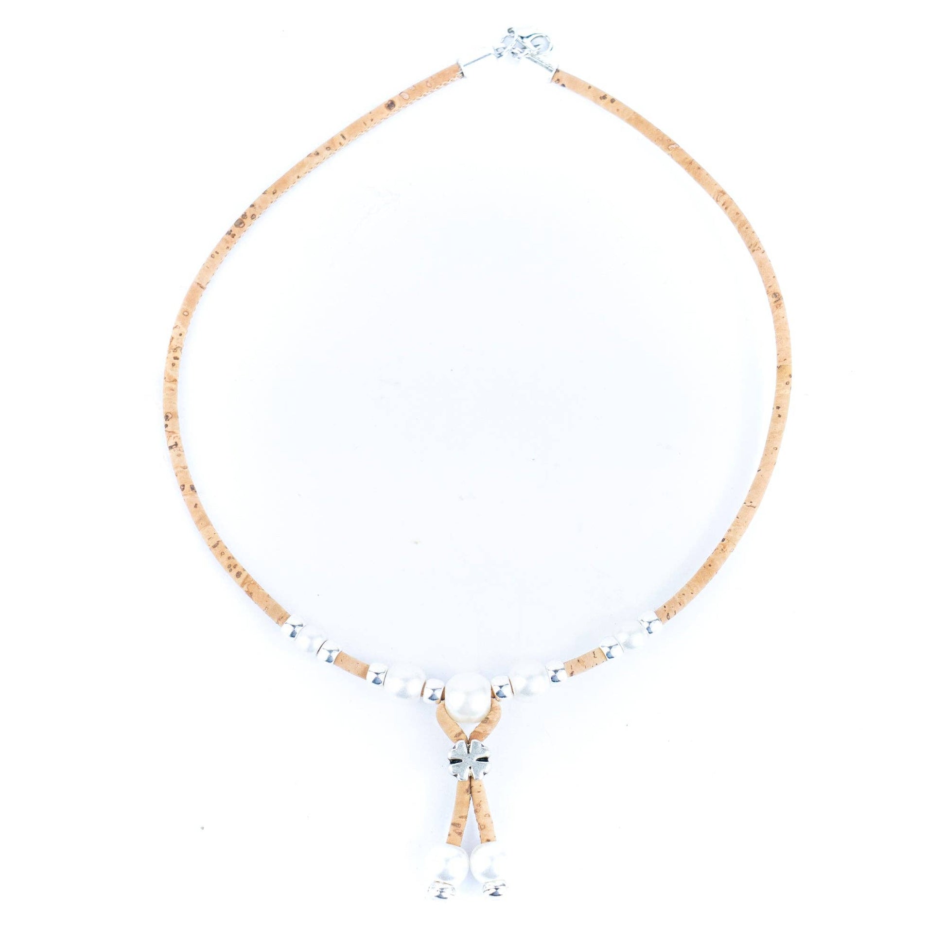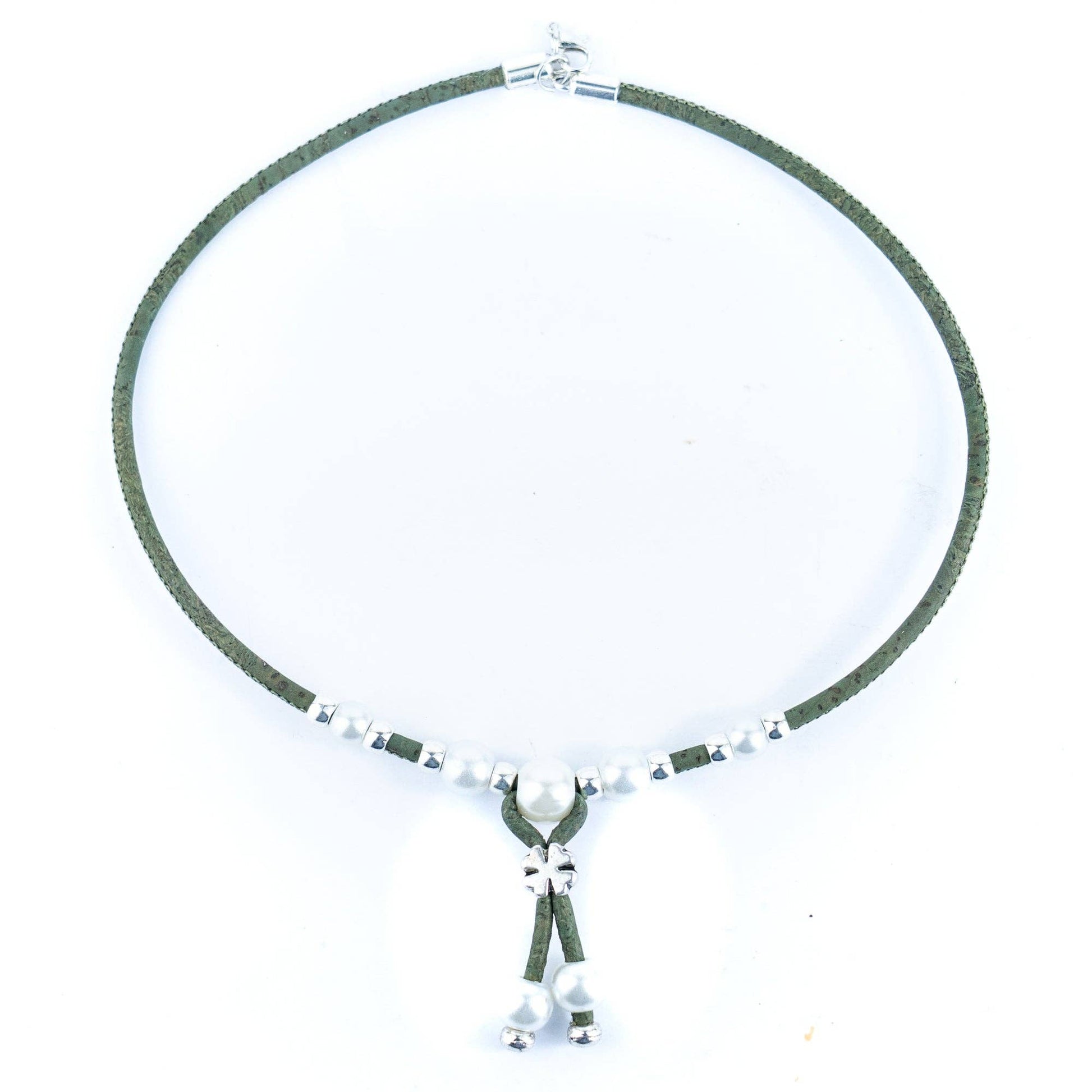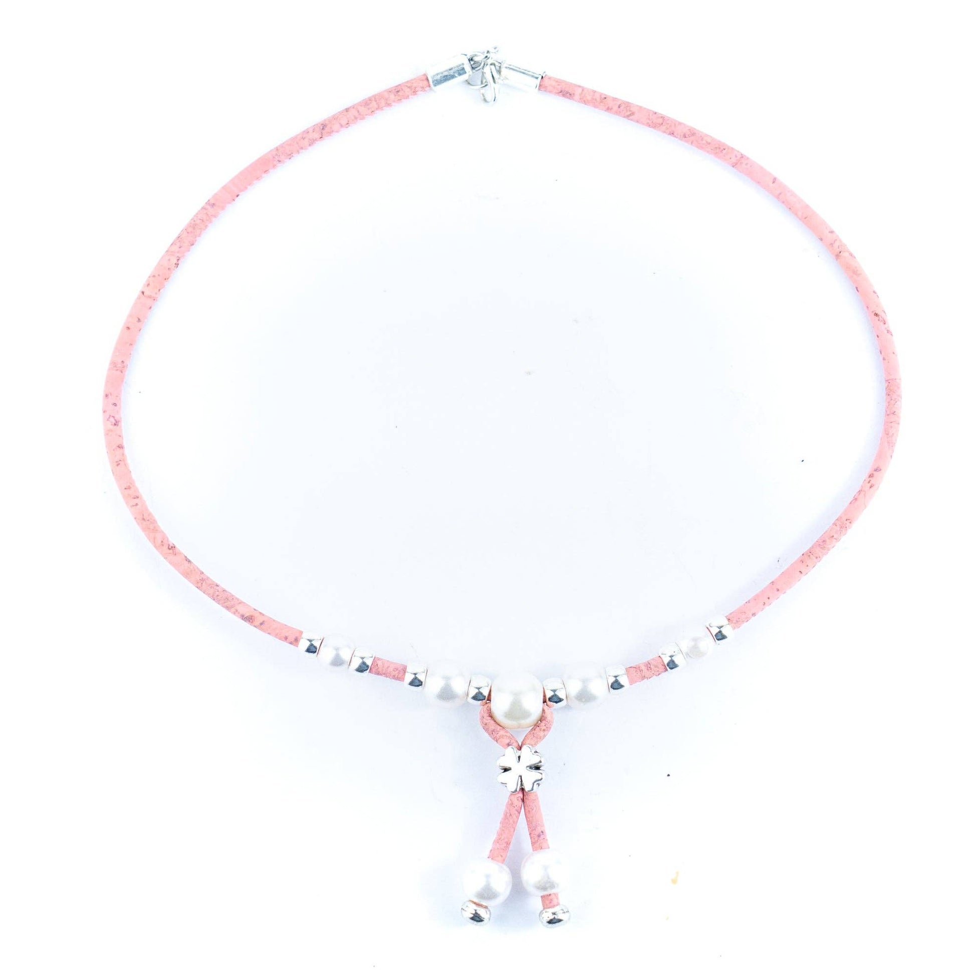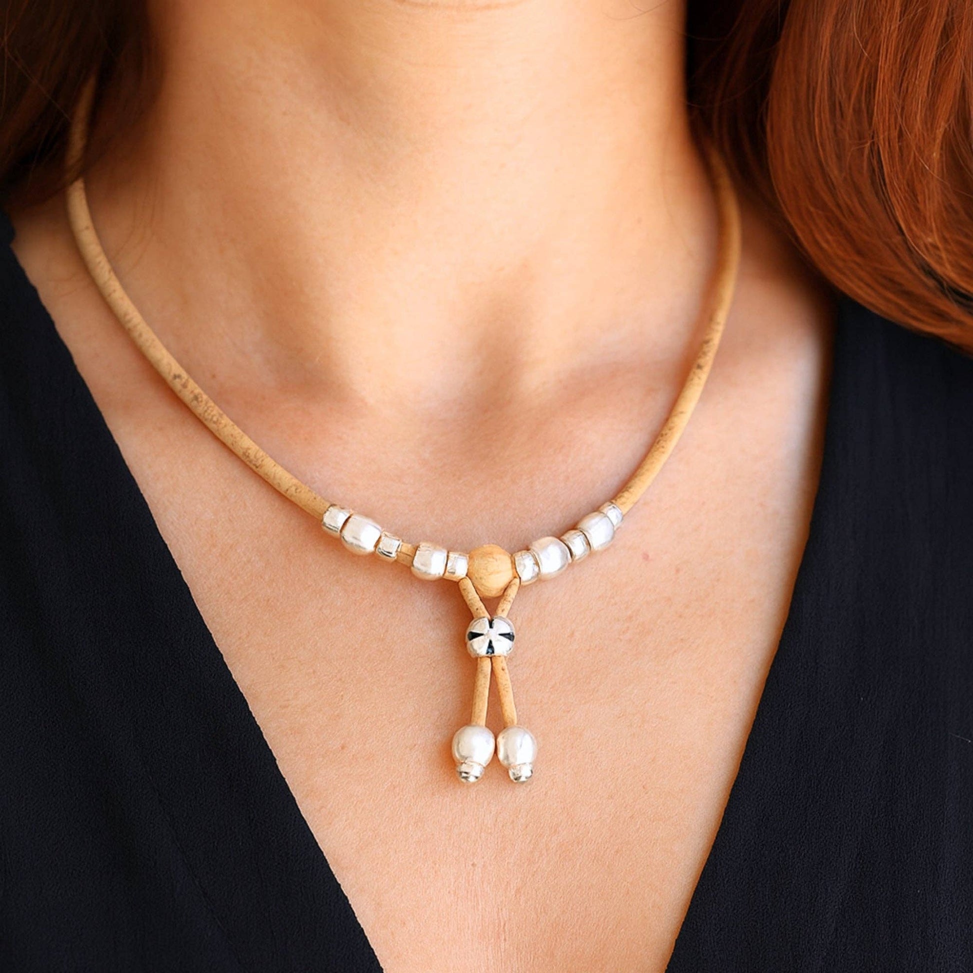 3mm Coloured Cork Cord Handmade Necklace with Plastic Pearls and Alloy Beads This elegant necklace is handcrafted from 3mm soft coloured Portuguese cork cord, decorated with shiny plastic pearls and metal alloy beads. Lightweight, eco-friendly, and vegan, it reflects the beauty of natural materials while maintaining a modern feminine charm. Perfect for everyday wear, holidays, or as a thoughtful gift for someone special.
